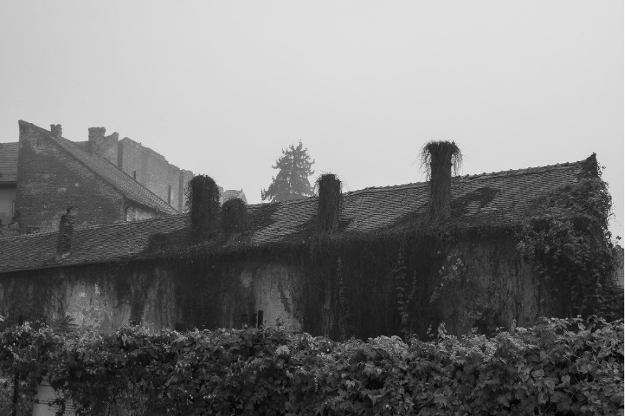 E o liniște ciudată prin Traian, într-o zi de toamnă fix înainte de amiază. Aerul miroase a tramvaiele care străbat nodul acesta de tranzit al orașului. De undeva, dintr-o curte interioară, se aude viață. Intru în așa-numita, pe vremuri, Casă cu Vultur. De-ndată mă latră doi câini – unul labrador negru și-un golden retriever, care devin tot mai prietenoși pe măsură ce se apropie de mine. Din păcate, e și clădirea de vizavi de Palatul Mercur, în care a ars bătrâna. Fabricul, de altfel, nu e străin de incendii.